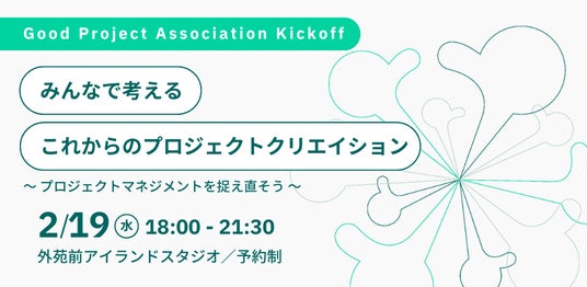 一般社団法人Good Project Association(グッドプロジェクトアソシエーション/東京渋谷区 代表理事:高山道亘、清水千晶、以下「Good Project Association」)は、誰もが必要な時に、必要な変化を生み出せる世の中を目指し、その手段としてのプロジェクト実装やプロジェクト推進の知見を共有・普及するために設立しました。当法人は「プロジェクト」に関わる皆様が交流・情報交換できるコミュニティとして、また活動を支援するための場として活動してまいります。