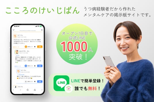 2024年12月30日に活動を開始したメンタルケアサイト「こころのけいじばん」の公式LINE登録者数が、サービス開始からわずか7日間で1000人を突破しました。この記録は、メンタルヘルスに関心のある幅広いユーザーからの注目と支持を受けており、多くの人々に心の支えを提供する場としての可能性を示しています。