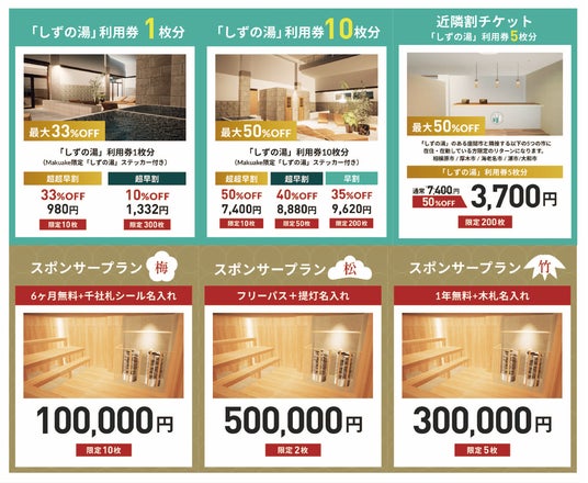 2025年2月中旬にオープン予定の「しずの湯 相模原」ですが、「Makuake」にて1月17日よりクラウドファンディングを開始しました。本プロジェクトの目的は、多くの方に「しずの湯」を知っていただき、さらに魅力的な空間を提供することです。いただいた応援購入金額は、外観補修、外気浴スペースの拡大、体験価値を高める備品購入に活用します。