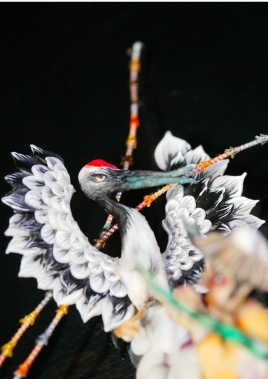 鶴の恩返し(手前は与作(鶴の命の恩人))