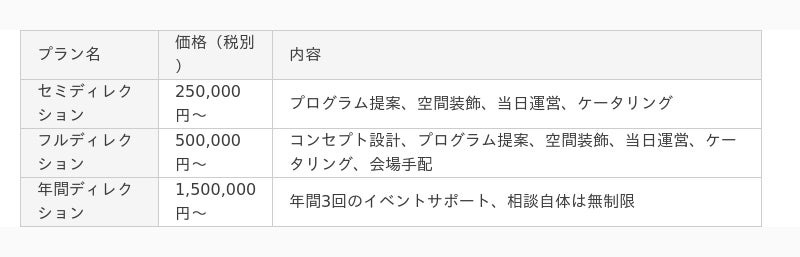 サービス内容:企業イベント企画・運営(周年パーティー、継承式、竣工式、新社屋お披露目会、入社式、忘年会、内定者顔合わせ会、表彰式など)