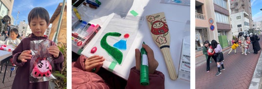 その後は、伝統的なだるまの販売に加え、子どもたちの笑顔があふれるようなイベントを新たに開催。餅つき体験、お絵描き綿あめ体験、羽子板絵付け体験、家族や友達など2人1組で参加するだるまさんが転んだなど、子どもたちや親子が楽しみながら伝統文化に触れることができるプログラムを実施し、人気を集めました。特に、だるまさんが転んだでは、子どもたちの元気な声が広場に響き渡り、会場全体が一体となって盛り上がりました。これらの取り組みは、単に伝統行事を受け継ぐだけでなく、子どもや親子が笑顔で過ごす事を通して、地域に新たな活気をもたらすことを目的としています。参加した保護者からは、「子どもたちが楽しそうでよかった」「地域にこのようなイベントが増えるのは嬉しい」といった喜びの声が数多く寄せられました。