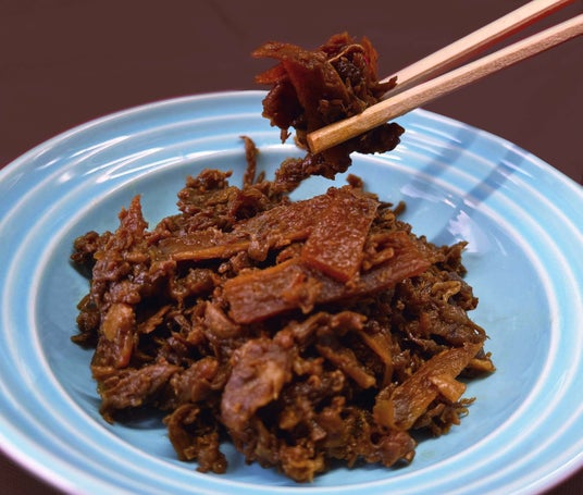 A5ランクの近江牛を2009年の創業以来当店に伝わる秘伝のたれと山椒、生姜、にんにく、唐辛子で炊きあげ、一晩寝かせて味を染み込ませ、余分な脂をきって柔らかく仕上げた近江牛のしぐれ煮に入れるのは滋賀県産のメンマ。現在流通しているメンマの97%は中国産ですが、たった3%しかない国産の中でもさらに少ない滋賀県産の竹のみを使ったメンマです。柏木竹林農園で丁寧に作られた塩漬けの竹を仕入れ、1週間かけて塩抜きをし、近江牛のしぐれ煮とあわせて炊きます。たれとお肉の味が染み込んだメンマは、柔らかい中にもコリコリをした食感があり、食欲をそそります。