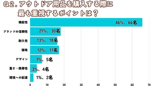 アウトドア用品を購入する際に最も重視するポイントは、圧倒的に「機能性(使い心地)」をあげる方が多く見られました。