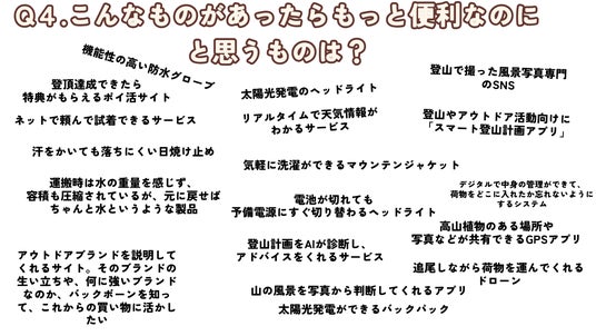 アウトドア商品は毎年進化し、新しい商品が登場していますが、使用者目線でも以下のような商品を期待する声は大きいようです。