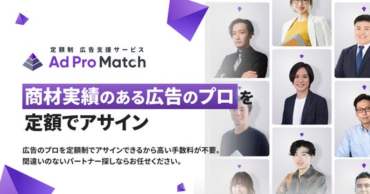 「Ad Pro Match」は、商材実績のある広告のプロを定額でアサインできるサービスです。
