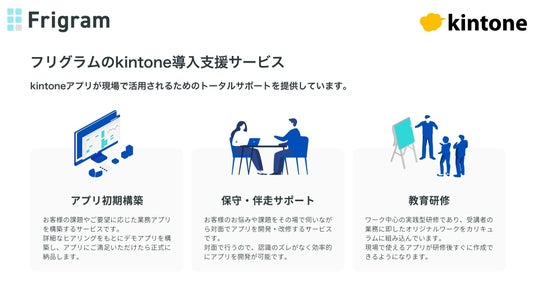 フリグラム株式会社(以下「フリグラム」)は、アオイテック株式会社(以下「アオイテック」)向けに、サイボウズ株式会社が提供する「kintone」の実践型研修を実施し、アプリ構築内製化に向けた支援を開始しました。
