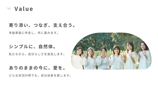 株式会社ponoは、社名の由来でもあるハワイ語の「pono」(自然体、調和、バランス)の精神を大切にする会社です。「pono」には、妊娠出産によって "自分らしさ” を見失いがちなママたちが、自身を肯定し、本来の「ありのままの自分」に立ち返るための居場所を提供したい、という願いが込められています。