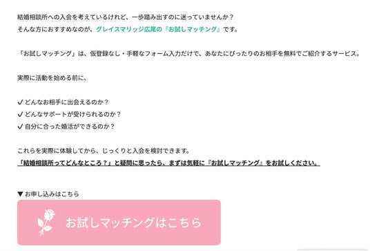 結婚相談所グレイスマリッジ広尾のお試しマッチングは、手軽なフォーム入力だけ!