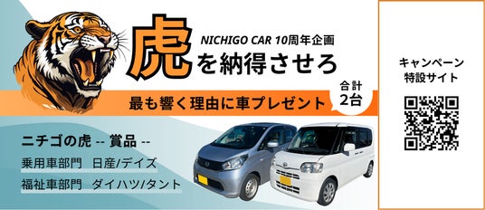 NICHIGO 10周年キャンペーン「ニチゴの虎」開催!クルマが人生を変える ―― あなたの熱意が“未来の一台”を手にする鍵!