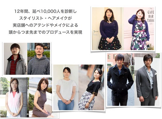 似合う色(配色)、形、柄、素材のトータルプロデュースとして12年間の実績。従来、4時間かかった似合う服の診断からの再現がAIを通して2分で完結する。