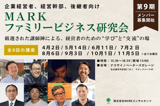 株式会社MARKコンサルタンツ(本社:愛知県名古屋市、代表取締役:岡本 雄三、以下「MARKコンサルタンツ」)は2025年4月2日(水)より、ファミリービジネスの経営者や後継者を対象にしたセミナー「MARKファミリービジネス研究会」第9期を開講いたします。
