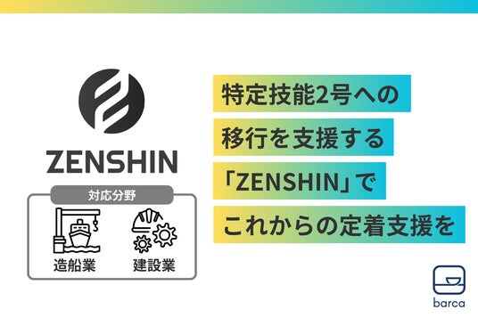 barcaでは、特定技能1号から特定技能2号移行に必要な技能試験・日本語試験のための教育業務を1つのサービスで完結し、知識や技能の定着・向上を実現する研修システム『ZENSHIN』を2025年5月1日より提供開始します。