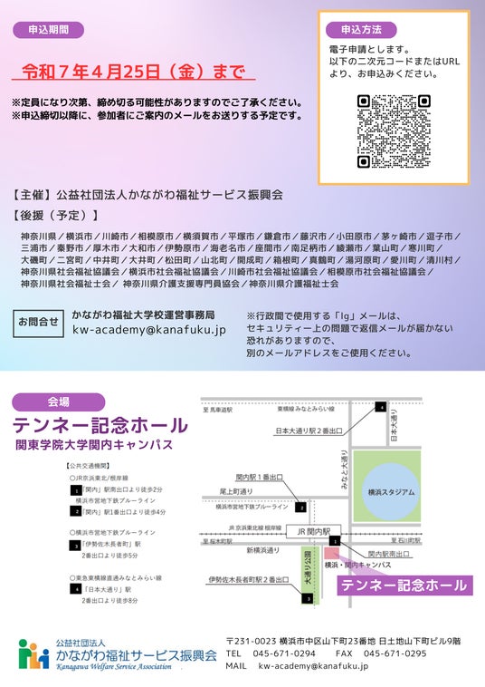 公益社団法人かながわ福祉サービス振興会(所在地:横浜市中区山下町23 日土地山下町ビル9階/理事長:瀬戸 恒彦)は、令和7年7月にかながわ福祉大学校を開設します。