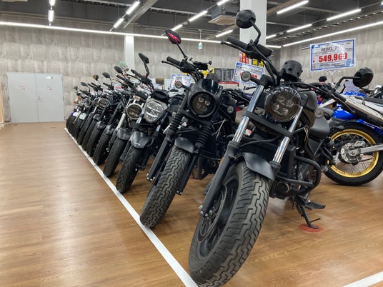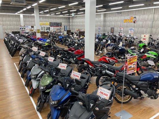 バイクのニーズに応えるために、福岡松島店では、バイク販売フロアも併設しました。運営は、「株式会社バイク館イエローハット」です。約123坪の展示場に国内各メーカー「SUZUKI・HONDA・YAMAHA」の新車をはじめ、良質な中古車、独自のインポートモデルまで、100台を超える車両展示を予定しています。
