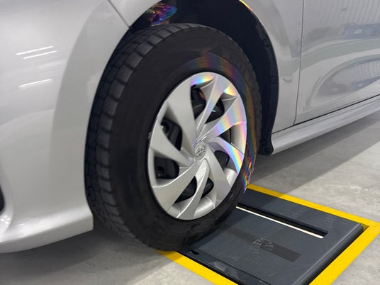 福岡イエローハットでは、安全に車検を行いたい利用者のニーズに応え、車検利用の増加を目指しています。旗艦店となる福岡松島店では、「通過型自動タイヤ溝測定器」を、西日本で初めて導入します。測定ユニット上を時速8キロメートル以下で通過すると、4輪のタイヤの溝を計測することができます。タイヤの状況を測りデータ化することで、属人化していた作業が公平にわかりやすく「本当に必要な時に」タイヤの交換をおすすめすることができます。