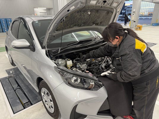 国土交通省の調査によると、整備士の有効求人倍率は2023年度に4.99倍で、全業種平均の1.17倍を大きく上回っており、自動車整備の担い手不足が近年課題となっています。福岡イエローハットも整備士の今後の確保については危惧しており、整備士の労働環境の改善に努めていきたいと考えております。こういった機械を導入することで作業時間を短縮したり、暑い過酷な中での作業を少しでも改善したりするために、大きな冷房機器やなるべく冷気を保つためのシャッターを導入するなど施設面で工夫を凝らしています。