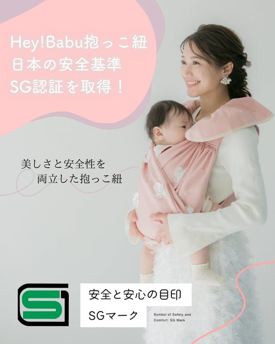 岐阜発の抱っこ紐ブランド「Hey!Babu(ヘイバブ)」が2025年2月14日、日本の安全基準「SG認証」を取得しました。Hey!Babuは、岐阜県在住で育児中の母親・松村梨香子(38)が5年前にデザインした抱っこ紐で、「ママだから我慢する」という固定概念を覆し、おしゃれと快適さ、そして幸せな育児を同時に実現することを目指して誕生しました。この度取得したSG(Safety Goods)認証とは、日本国内で最も厳しい安全基準の一つです。大手企業でさえ容易ではない、厳格な試験、高額なコスト、専門的な基準をクリアする必要があり、個人ブランドでの取得は前例がほぼありませんでしたが、「ファッション性と安全性を兼ね備えた抱っこ紐をつくりたい」という想いで挑戦し、約半年の幾度の審査期間を経てSG認証取得を達成しました。