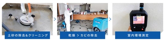 日本全国に、水害・火災などのレストレーション(復元・復旧)施工を行う技術資格者(加盟事業者)を有しており、浸水、漏水や火災などのトラブルで『被災した建物』の早期復元・機能回復を実現するため、被災した建物のクリーニング、消臭・消毒、防カビ、消臭等の施工を行っております。