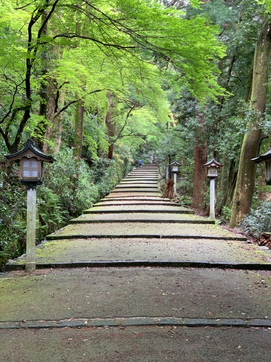 白山比咩神社・表参道―苔むす石段を包む新緑の回廊