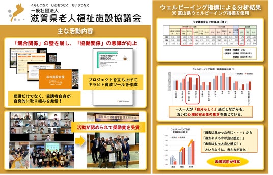 株式会社ラシクは、福祉現場が抱える採用難、離職率の高さ、育成体制の不備といった課題に対し、滋賀県老人福祉施設協議会向けに独自のウェルビーイング人財育成(TM)プログラムを提供しております。