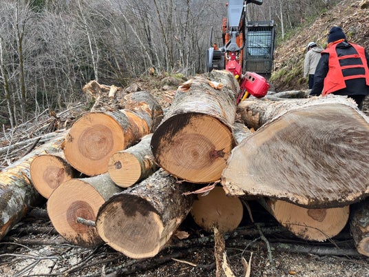 その現場では、建物に使用する木材を山で選定するところから始まりました。