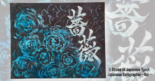書道家恵(KEI)のポートフォリオの一部。作品名「碧い薔薇」