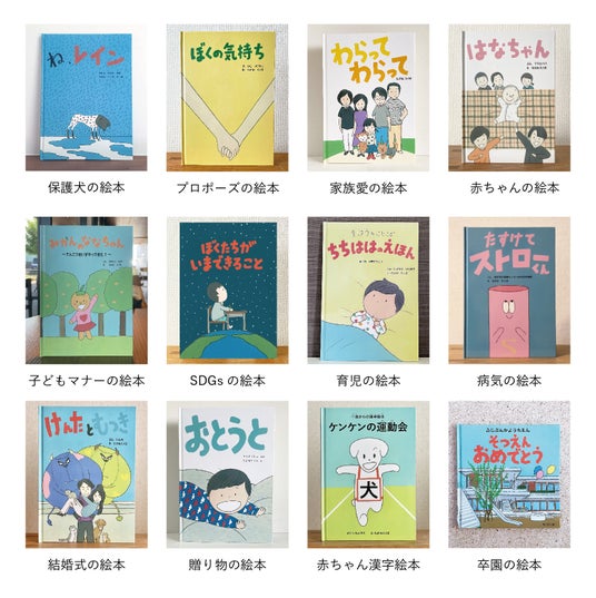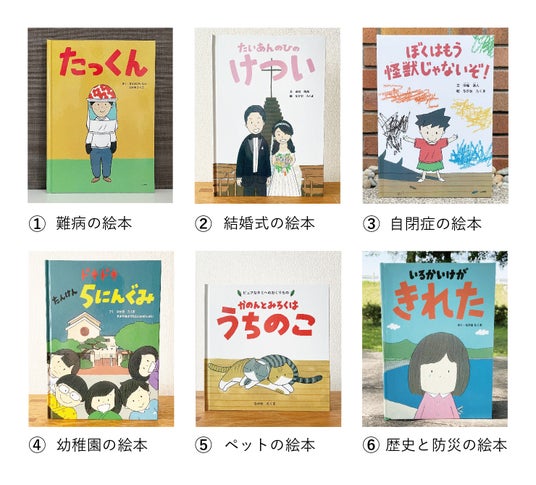 歴史や難病、結婚や幼稚園、出産育児、死別、子どもマナーなどの様々なテーマなど、願いを叶える絵本を描く。