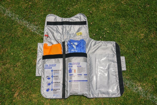 ColdVest(コールドベスト)はFDAクラス1医療機器で、特許取得済みの吸熱冷却技術を使用し、電気、冷蔵、氷なしで体温を急速に下げます。ベスト内部に液体を加えることで、冷却化学物質が活性化し、装着者の深部体温を素早く低下させます。
