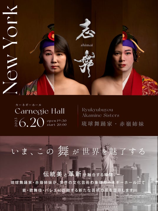 2025年6月20日(金)午後8時、ニューヨークのカーネギーホールにて琉球舞踊家赤嶺姉妹による琉球舞踊の特別公演『志舞(しまい)』が開催されます。