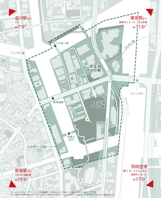 ※1 本資料における「天王洲アイル地区」とは、「水とみどりのエリアプラットフォーム」の対象範囲(2025 年時点)を指す。(上記地図内の点線囲み部分)