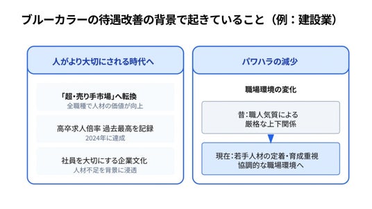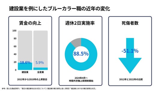 もちろん、ホワイトカラーの仕事にも重要な役割は数多くあります。私たちは、「ブルーカラー」と「ホワイトカラー」の両者の対立を煽るのではなく、ブルーカラー産業の当事者として、ブルーカラー職の魅力と産業全体の人口不足などの課題を深く知っているからこそ、過度な「ホワイトカラー信仰」から一歩立ち止まり、ブルーカラーの実態を見つめ直す必要があると考えています。