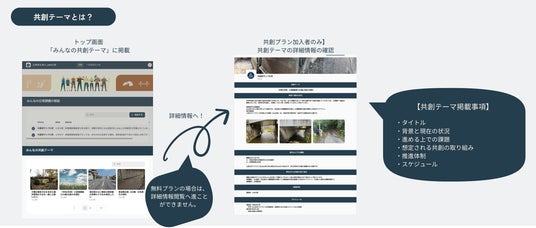 市町村は、地域で取り組みたいと考えている中長期的な課題・方針を「共創テーマ」として掲載し、意見交換先を探しています。共創プランでは、企業側が市町村の共創テーマに対して意見交換を申し出ることができます。意見交換を通して、新技術の導入の案件や、包括的民間委託の案件などより高付加価値の案件の創出を実現していきます。