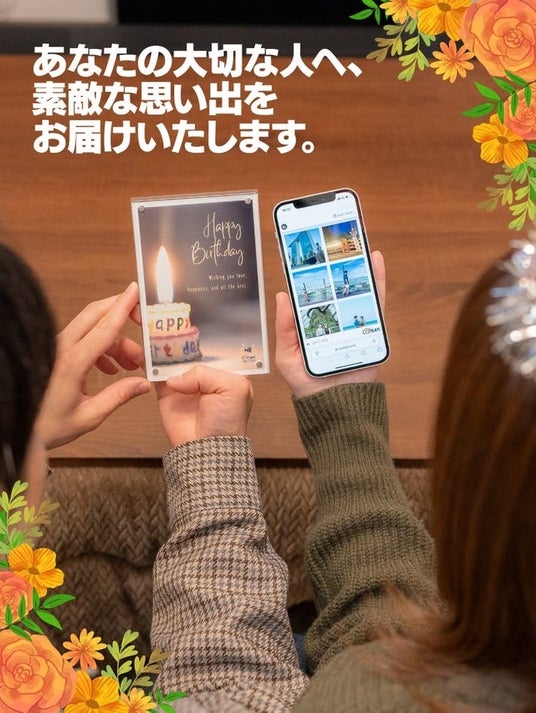 誰のスマホをフォトデザインにかざしても写真を閲覧できるので、誕生日や結婚式などのプレゼントにもおススメ。