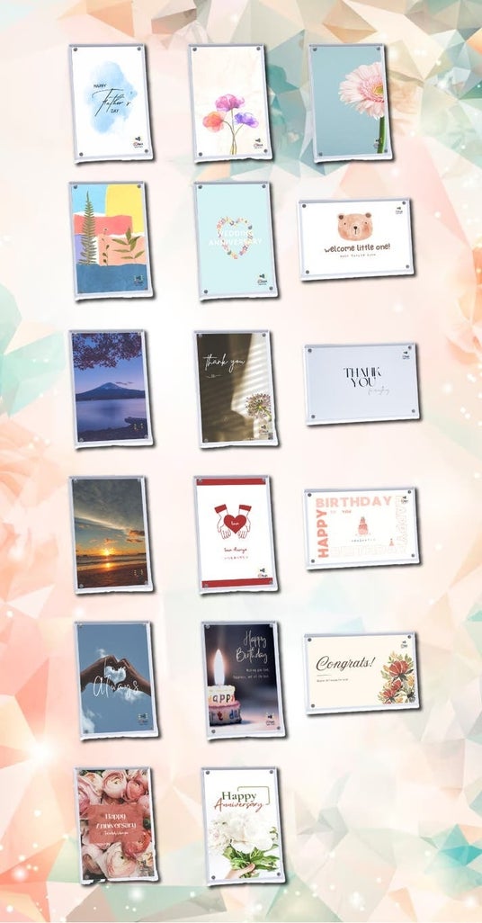 卓上インテリアとしても映える植物や風景のポストカード風のフォトデザインもあるので、プレゼントや自分用など、用途に合わせてお選びいただけます。
