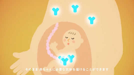 - 妊婦とその家族向け(アニメーション):母子免疫のしくみや意義を視覚的にわかりやすく紹介し、家族全体で理解を深められる構成。