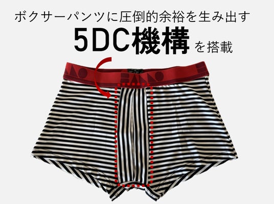 意匠出願中の5DC機構により、ボクサーパンツでありながら締め付けのない超開放型パンツを開発。募集当日で目標金額を達成しました。