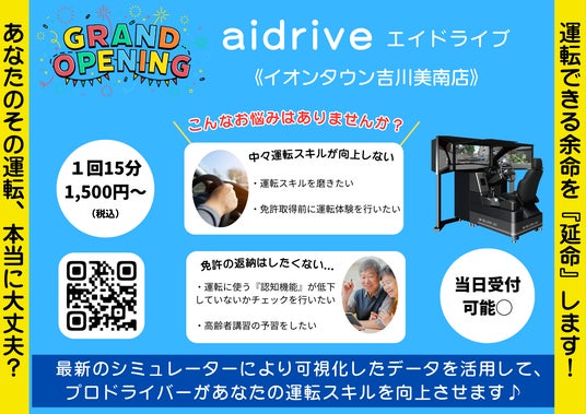 『イオンタウン吉川美南(埼玉県吉川市)』にて『aidrive(エイドライブ)』1号店を2025年4月5日(土)にオープン!