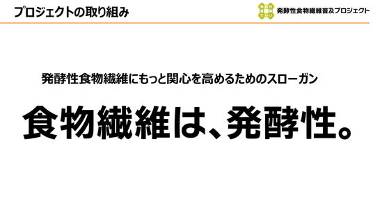 一般社団法人「発酵性食物繊維」普及プロジェクトは、本プロジェクトの発足を記念して