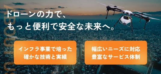 当社は、「ドローンの力で、もっと便利で安全な未来へ」をコンセプトに、空の産業革命を実現し、中部エリアを中心とした全国の皆さまへ新しい価値を提供いたします。