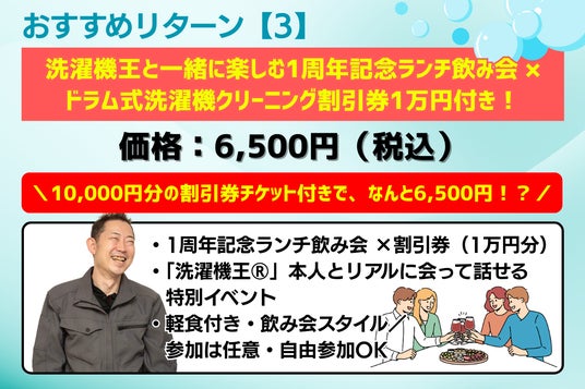 3.【洗濯機王(R)に会える】ランチ飲み会参加券+クリーニング割引券1万円分
