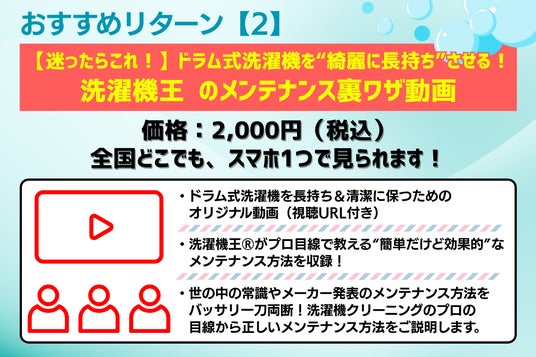 2.【ワンコイン】洗濯機王(R)直伝!自分でできる洗濯機メンテナンス講座(動画)