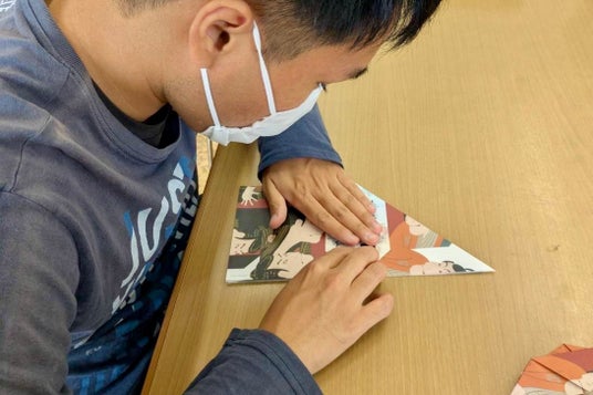 東京都羽村市にある障害者就労継続支援B型事業「いちょう」の利用者さんが、ひとつひとつ心を込めて折っています。