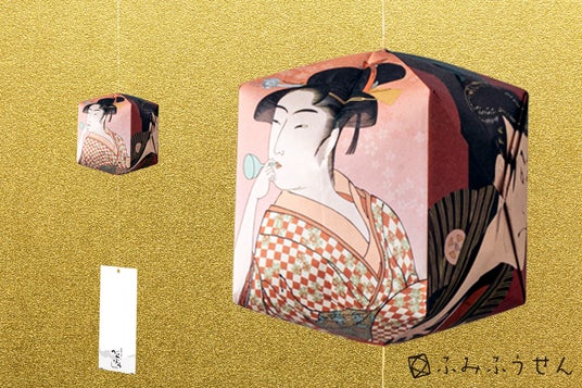 「ふみふうせん」は、折り紙でできた紙風船に美しい浮世絵の絵柄を施し、金糸でつないだ一筆箋を添えることで、手紙として送ることができるユニークな手紙セットです。