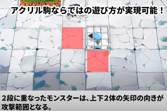 ・駒を重ねることでモンスターが強化される、透明アクリル駒ならではのギミック