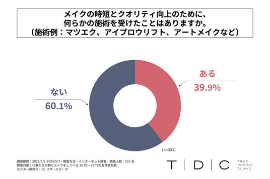 仕事の日の朝にメイクをしている20~30代女性会社員の約4割が、メイクの時短とクオリティ向上のために、何らかの施術を受けたことがある