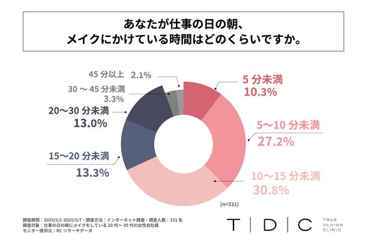 一般社団法人TRUE DESIGN CLINIC(本社:大阪市中央区、代表者:院長 山本 義久)は、仕事の日の朝にメイクをしている20代~30代の女性会社員を対象に「朝のメイクの負担感と美容施術活用」に関する調査を実施しました。この調査から、仕事の日の朝にメイクをしている20代~30代の女性会社員の朝のメイクの負担感と美容施術の活用の実態などが明らかになりました。