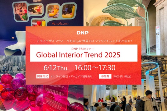 大日本印刷株式会社(DNP)は、6月12日(木)に、イタリア ミラノを中心とした最新のグローバルインテリアトレンドを紹介するオンラインセミナー「DNP P&Iセミナー Global Interior Trend 2025」を開催します。