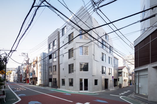 東京の中心、港区白金に位置する集合住宅・店舗・事務所の複合ビル「ESCENARIO白金」は、五の橋からの通りの四差路角地にあり、街角にあるアイコニックなデザインを意識しています。ファサードはコンクリート打放しで、渦巻状に変化したコンクリート面が特徴的です。このデザインにより、季節や時間によって多様な表情を見せることが出来ます。各住居はワンルームから1ベッドルームタイプで、正方形の開口部が空間の広がりを演出します。可動壁を用いた多様な空間構成が可能で、メインの用途である住居の居住者が自在にリビング、ダイニング、ベッドルームを変化させることができます。4階と5階はメゾネットで、ロフトスペース付きのペントハウスとして設けられています。多様な屋内外の空間を提供し、ミニマリズムを基調に、素材と大らかな空間構成により居住者が主人公となる豊かなライフスタイルを提案しています。