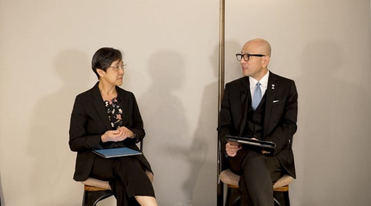 マリア・エレナ・デ・セナ・フェルナンデス局長とインタビュアーの渡邊章太郎氏